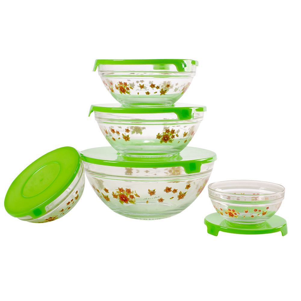 Набор стеклянных салатников с крышками Irit GLSA-5-002 зеленый